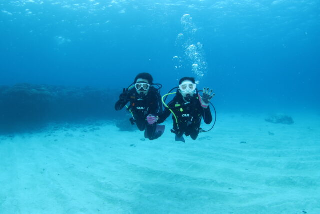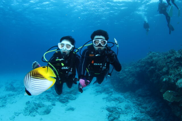 初のダイビングにチャレンジのお二人でしたが、後半にはスイスイと泳いで余裕の表情でした。